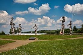 I really like this because it seems whimsical and its different and fun. The sculpture are also semi-interactive because you can move around with in the ring of sculptures and pose beside them and touch them.